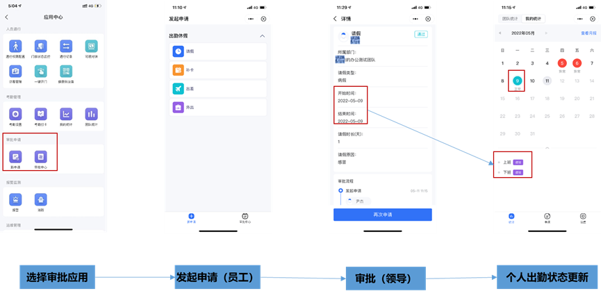 App功能介绍——假勤申请+审批: