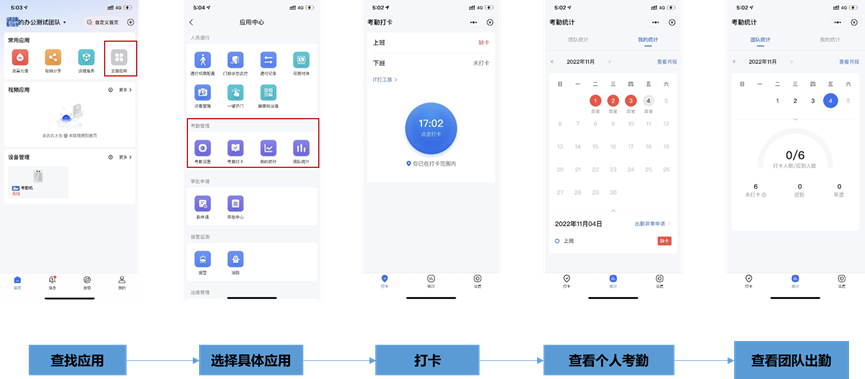 App功能介绍——打卡+查看考勤: