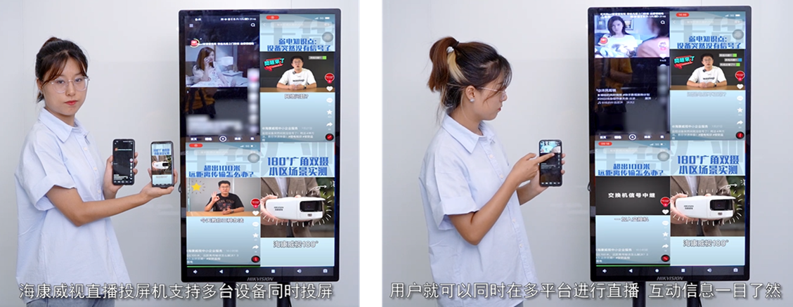 多屏直播,满足多直播间在线实时互动:直播投屏机支持多台设备同时投屏,主播可以同时在多平台进行直播,互动信息一目了然
