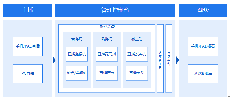 做好一场高质量的直播,除了主播控场、卖点讲解能力和团队营销推广配合默契以外,重要的就是要有一套功能全、门槛低、性价比高的直播设备。满足:该有的功能都要有,功能全;操作简单易上手,门槛低;设备性价比高,成本低。