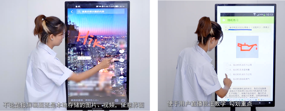 手写批注,随时与直播间网友互动(需要投屏机支持触控):支持投屏画面、本地存储图片视频等任意界面,均可进行批注演示。同时,直播屏自带电子白板支持绘图、擦除、批注等功能,方便主播在直播间实时讲解互动。