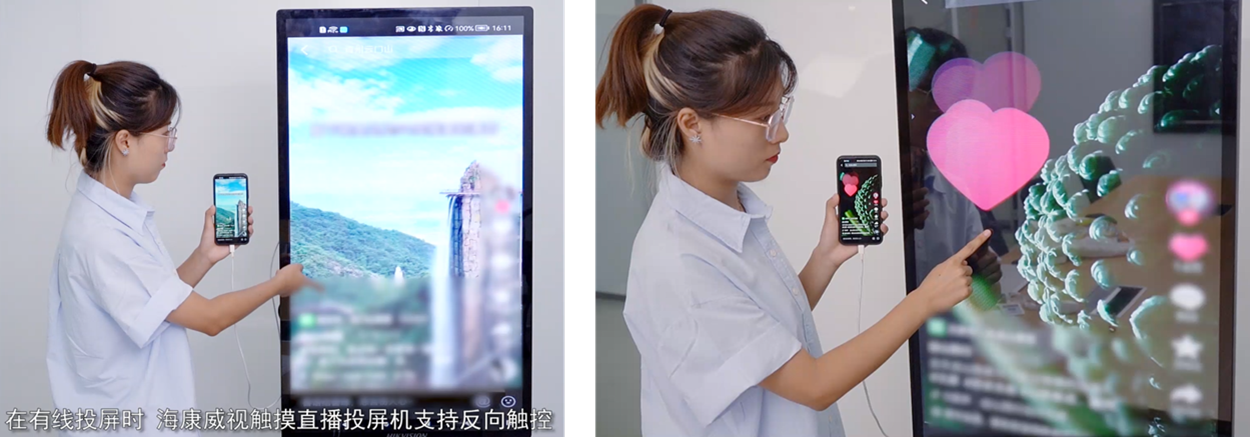 反向触控,大屏互动更自由:在有线投屏时,直播投屏机支持反向触控,可以直接通过直播投屏机上直接对投屏画面进行操作(需要投屏机支持触控)。