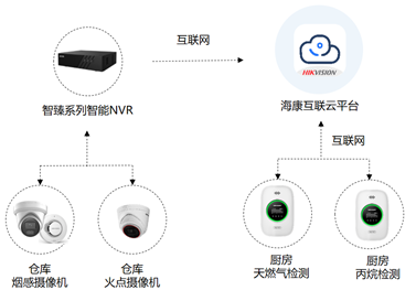 餐饮门店消防管理是门店管理重要一环,其中仓库、厨房是消防重点覆盖区域。传统火灾的预防更多的是靠烟感探测,但是水汽可能对烟感形成干扰造成误报。采用火点检测可以自动检测监控区域内的温度变化及进行火点识别定位,准确率高,帮助相关人员及时应对火情,降低人员伤亡及财物损失。且营业场所除了配备消防设施外,还需配置摄像机等安防设备,设备繁琐,采用火点检测解决方案可同时满足消防、安防双重需求。餐饮门店需要一套可以事前及时发现,并实现告警提醒,及时人工接入,防止事件发生。